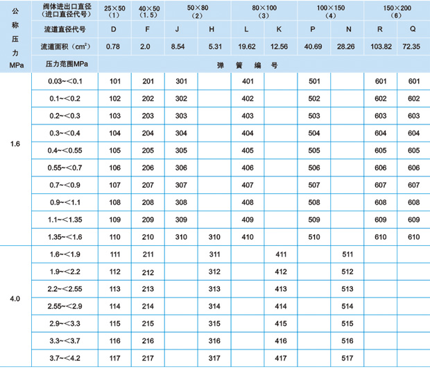 彈簧編號(hào)與定圧范圍